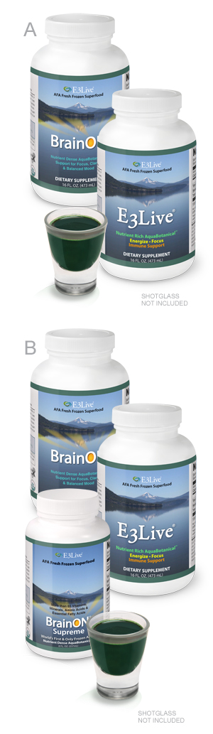 Do you want to try a sampler of E3Live, E3Live + BrainON, and/or E3Live + BrainON Supreme? Order one of our E3Live 16oz Variety Packs! In Pack A - you'll receive (3) E3Live 16oz original and (3) E3Live + BrainON 16oz, in Pack B - you'll receive (2) E3Live 16oz original, (2) E3Live + BrainON 16oz, and (2) E3Live + BrainON Supreme 8oz.